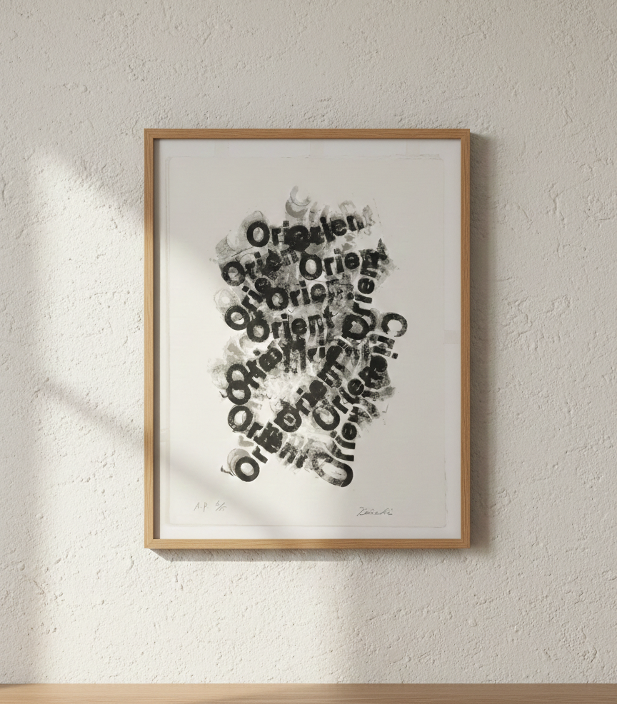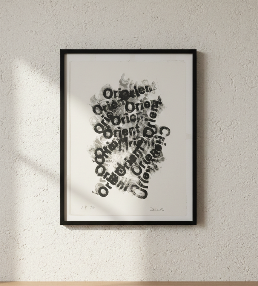無機質でありながらも、一点ごとの刷りのニュアンスから確かな手仕事の気配が感じられる本作。コンクリートやスチールを用いたモダンな建築、ミニマルなリビング、あるいは静寂な書斎など「思考を研ぎ澄ます空間」に完璧に調和します。
