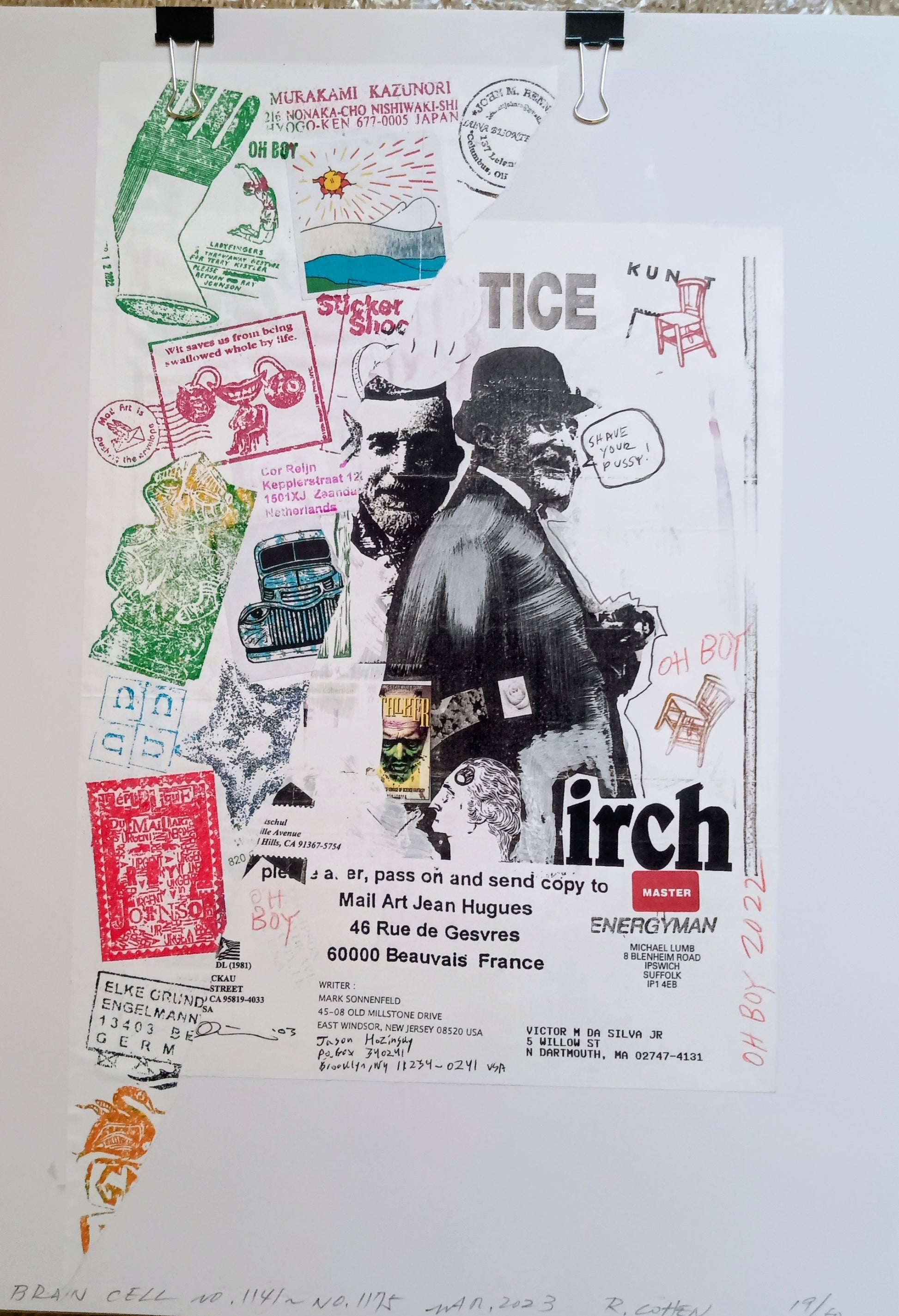 日本のメールアート界の巨星、幸園良介(Ryosuke Cohen)の集大成ともいえるプロジェクト「BRAIN CELL」の、№1141~№1175までを網羅した極めて希少な35枚セットです 。